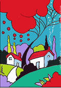 It is easy to see the influence that Ms. Cliff had on the style of the 1960s especially the trippy cosmic work from that era by Peter Max, Milton Glaser and the great German designer and illustrator Heinz Eidelman (who designed the Beatles' animated film "Yellow Submarine"). |